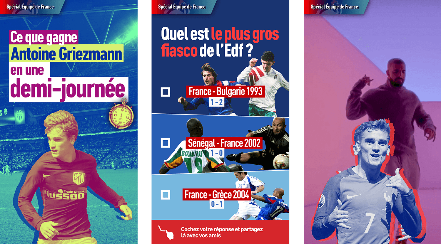 Es ist eine unglaubliche Chance an so einem Projekt teilzuhaben. In den letzten 3 Monaten konnten wir dazu beitragen wie Inhalt in einem neuen Medium Form gegeben wird. Das Discover von l'Equipe wird inzwischen standardmäßig als Beispiel für Qualität und visuelle Innovation genannt und ein Großteil der benutzten Formate in Frankreich wurden von uns entwickelt.