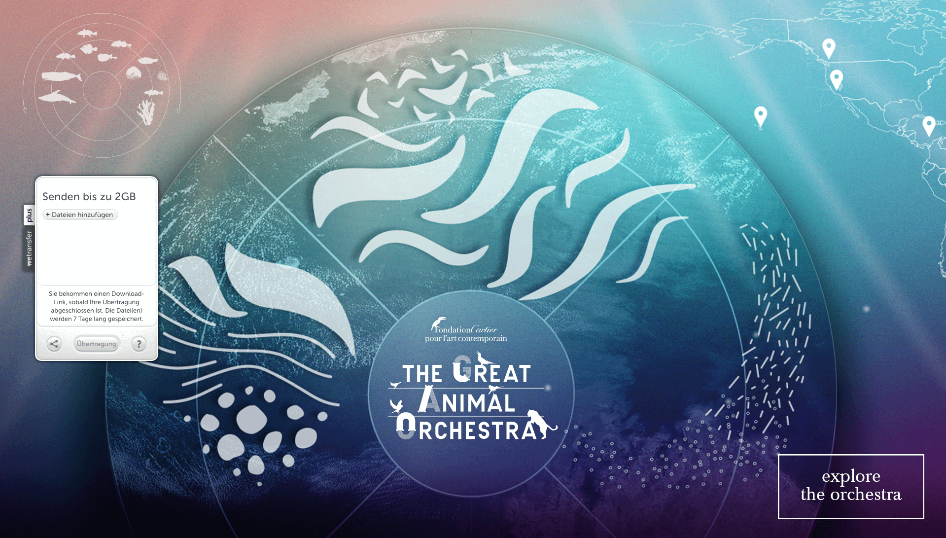 WeTransfer hat Upian angefragt ob sie nicht ihr Projekt Le Grand Orchestre des Animaux präsentieren möchten. Also bekam ich die Aufgabe mich in Absprache mit der Fondation Cartier darum zu kümmern. Die Implementierung würde WeTransfer übernehmen.